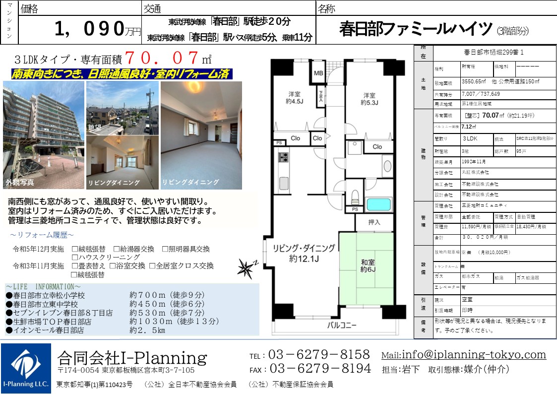 物件情報 【価格変更】 春日部ファミールハイツ 1,180万円→1,090万円 2025.11.08 本日価格変更致しました。 現況空室のため、いつでもご内見可能です。お気軽にお問合せください。 https://suumo.jp/ms/chuko/saitama/sc_kasukabe/nc_78306044/ スーモ掲載中 Tweet Share Hatena Pocket RSS feedly Pin it